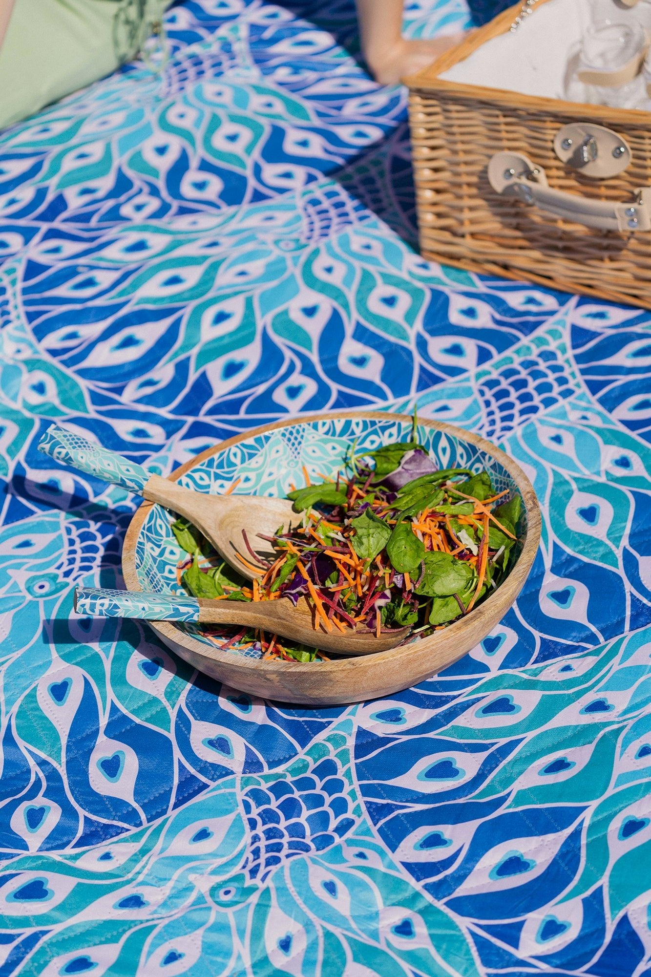 Peacock Paradise 2pc Mango Salad Servers 24cm - Wood & Enamel