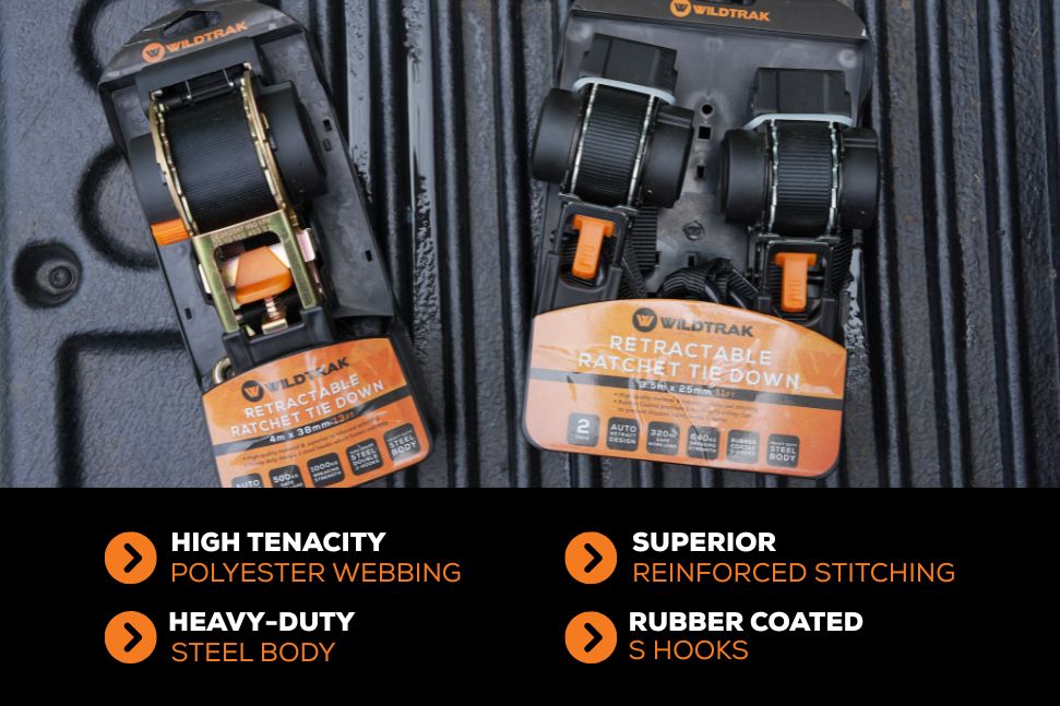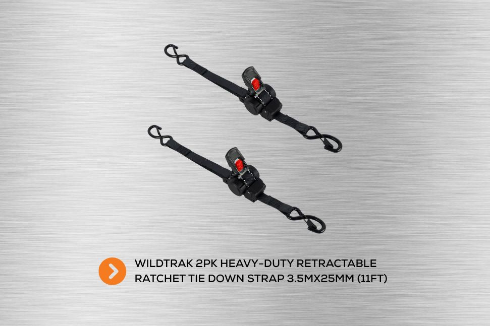 Wildtrak 2Pk Heavy-duty Retractable Ratchet Tie Down Strap 3.5m x 25mm (11ft)