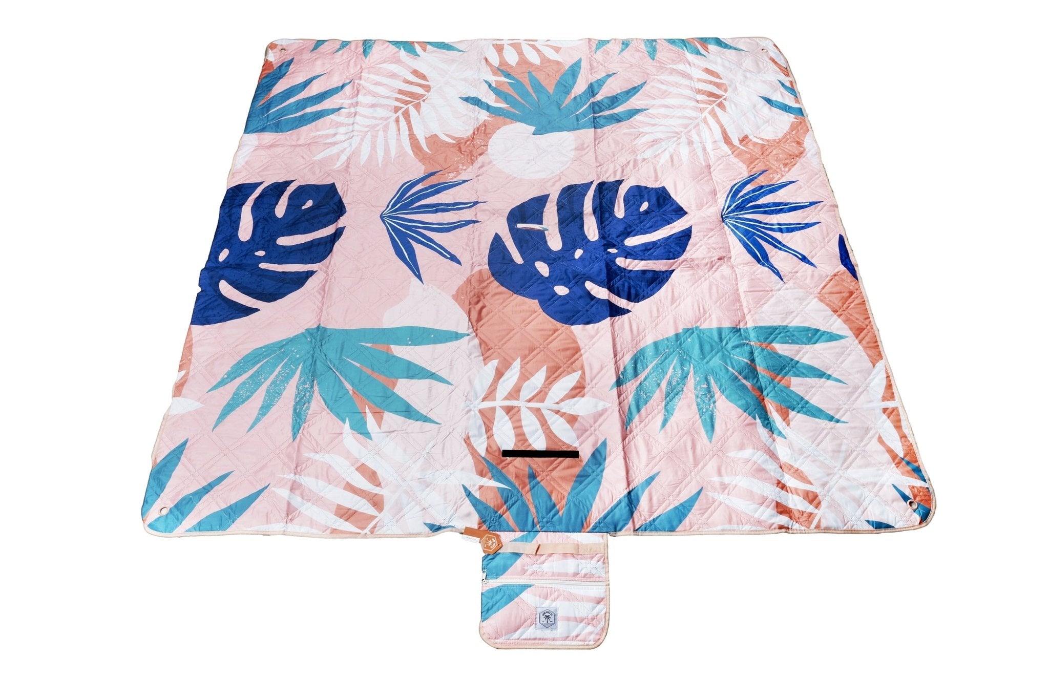 Blush Palm Premium Picnic Mat Blanket, 2x2m, Waterproof Base, Carry Strap, Storage Pocket, 4 Ground Pegs