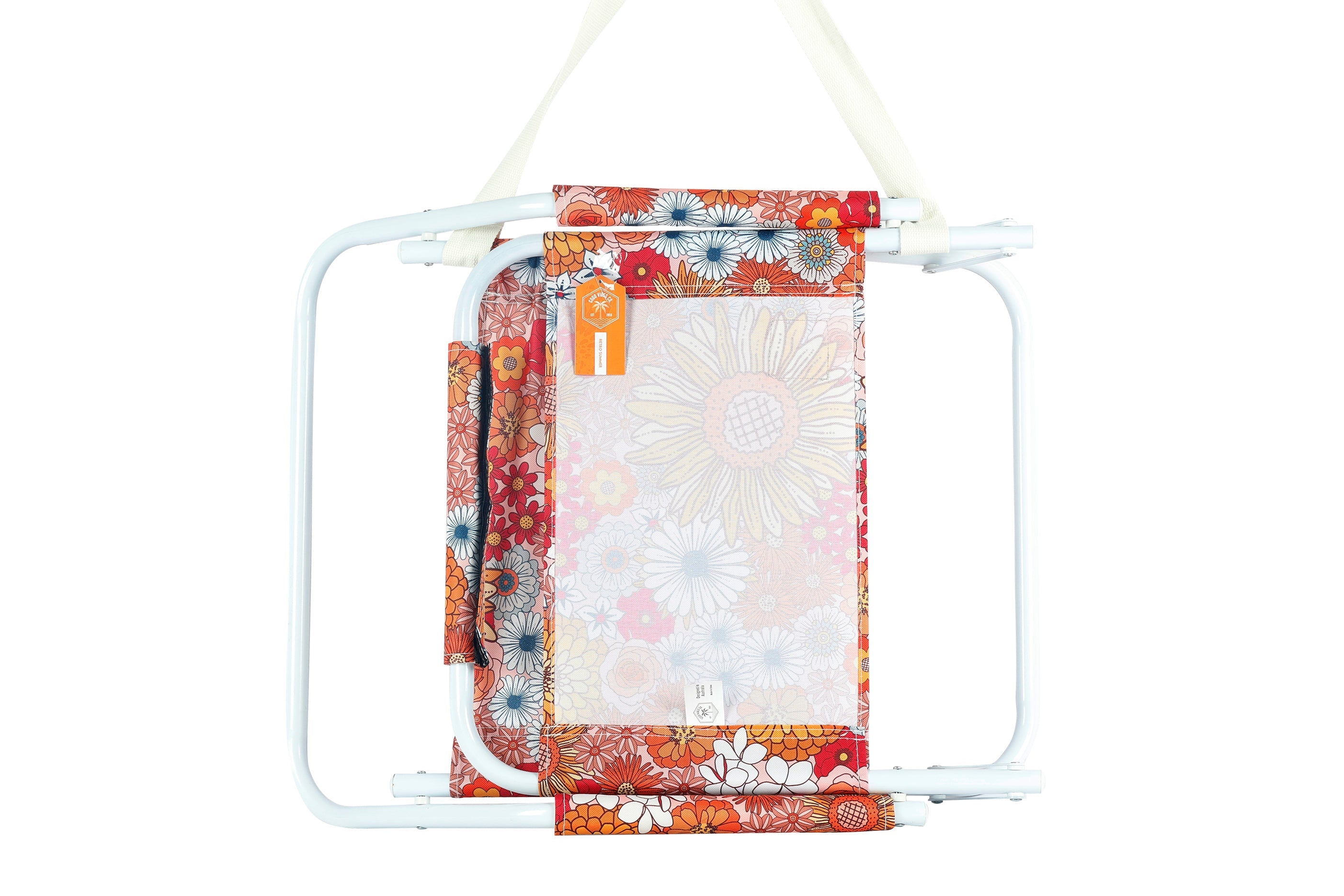 Retro Summer Foldable Beach Chair with Carry Strap, Lightweight & Portable, High Back, Powder Coated Frame